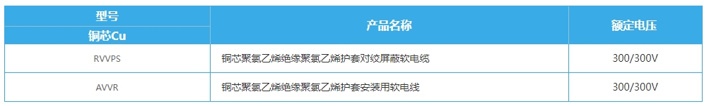 产品型号:RVVPS、RVSP、RVVSP 额定电压:300/300V 产品特性:对绞屏蔽软电缆,编织线缆柔软耐用。 产品用途:适用于交流额定电压U0/U为300/300V以下电器、仪表和电子设备及自动化装置用。